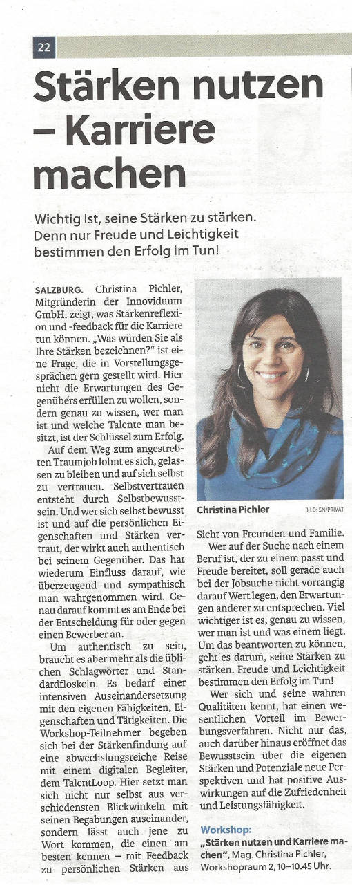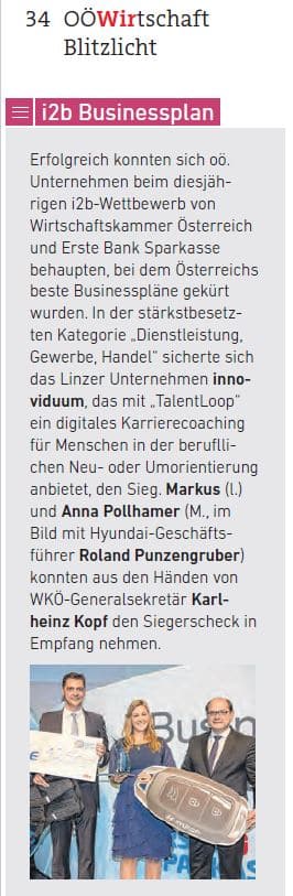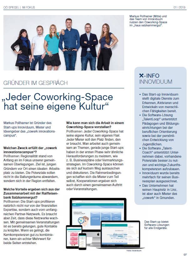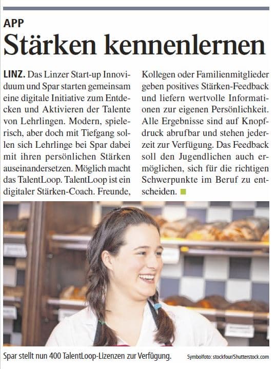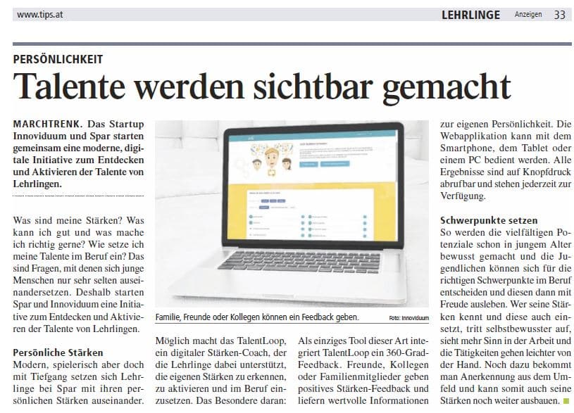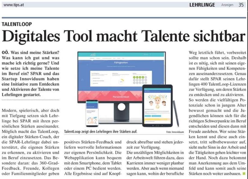 Mit einem Online-Tool namens TalentLoop will das Linzer Startup Innoviduum (der Name ist offenbar Programm) einen digitalen Coach anbieten, der dabei unterstützt, individuelle Stärken zu entdecken, zu aktivieren und gewinnbringend zu nutzen.